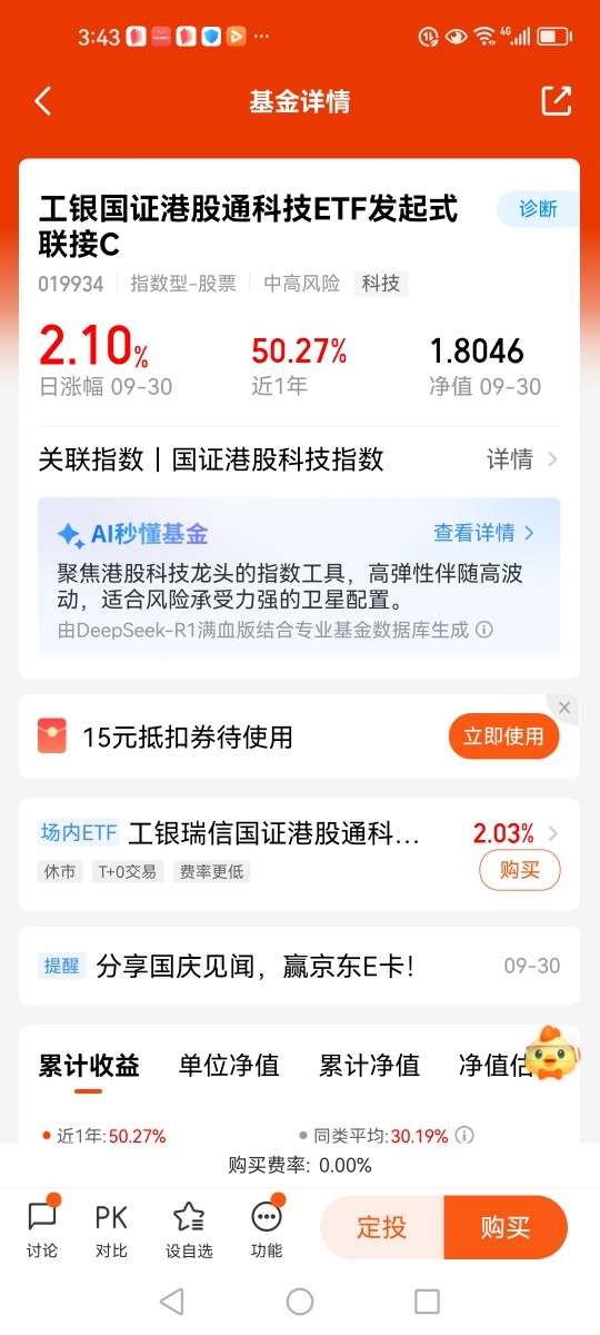 #分享国庆见闻,晒收益,瓜分好礼!#打卡第十天。2024年年底DeepSeek的爆火,在AI领域技术突破又推动产业变革,成分股在AI应用等领域有先发优势,进一步推动中国科技资产价值重估。2025年以来南向资金不断流入港股,外资也看好中国科技资产,其估值性价比高,长期增长空间明确。而2024年国家大基金第三期成立,5000亿科技创新再贷款加速落地等政策,均表明我国政府坚定支持科技创新发展的决心。