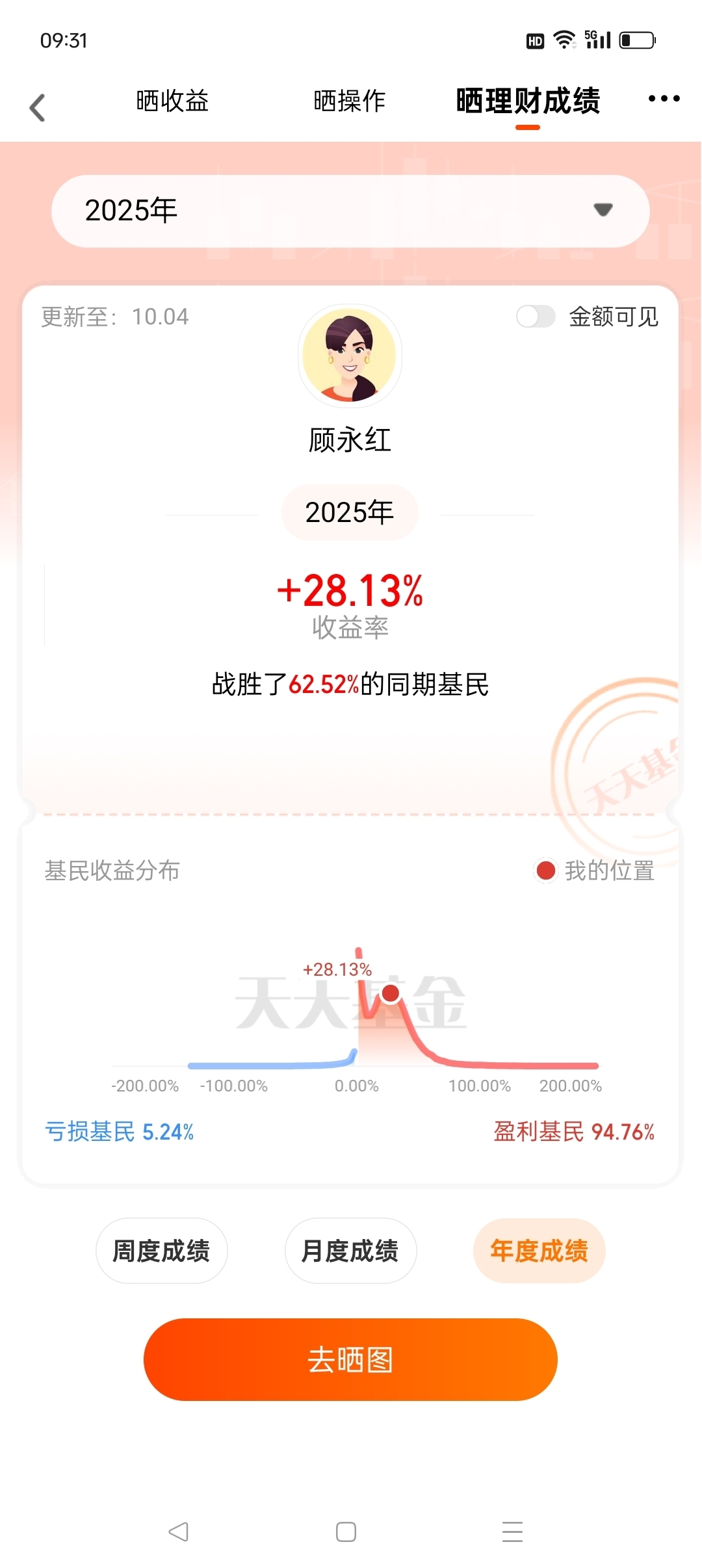 #分享国庆见闻,晒收益,瓜分好礼!# 10月5日,国庆假期第五天。节前沪指收盘逼近3900点,我的基金账户收益率,今年以来收益率28.13%,创出年内新高,也创出2021年10月15日天天基金开户以来新高,对这一理财成绩,我感到非常满意!之所以能取得这样好的成绩,离不开长期投资、价值投资和分散投资,也离不开对工银瑞信基金产品的重点配置。