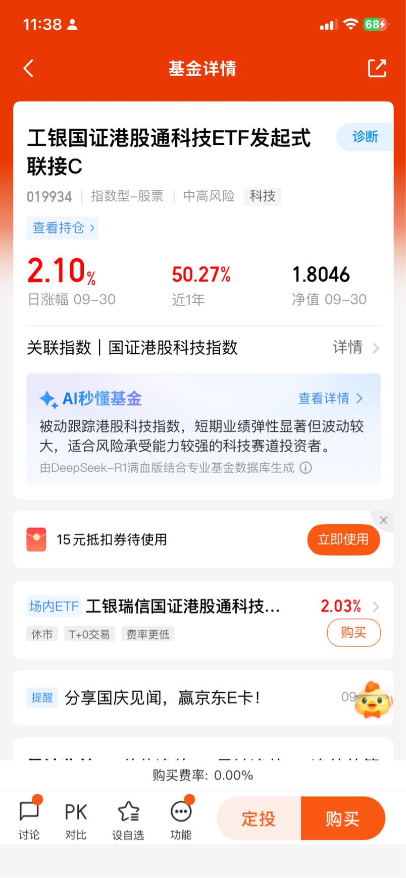 我继续看好国证港股通科技的后续表现,$工银国证港股通科技ETF发起式联接C$ 是布局港股科技投资机会的优选!综合费率低,申赎交易便捷,长期以来收益表现优于其它港股科技指数,近一个月涨13.55%,在4345只同类基金中排名前列,非常优秀!