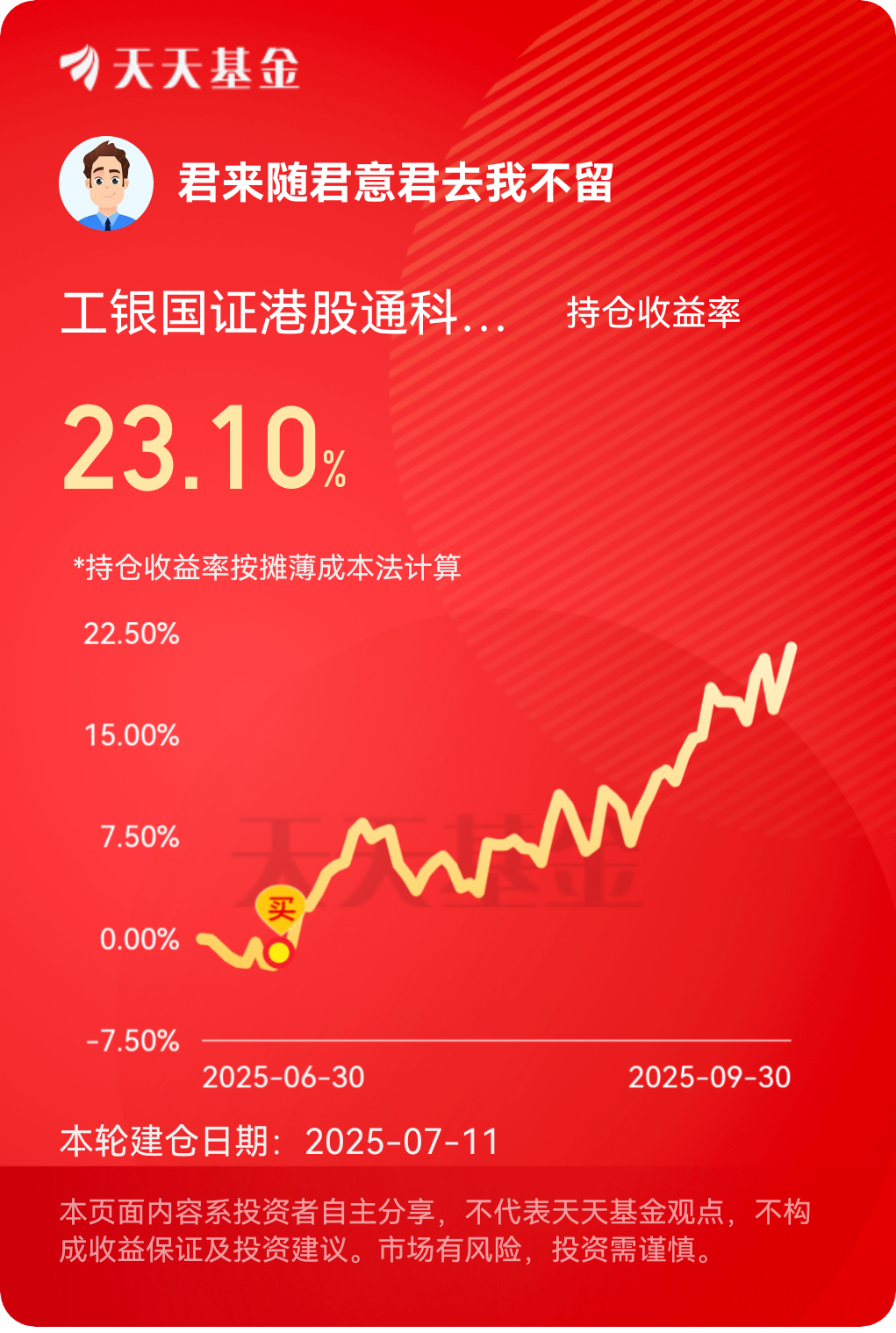 综上所述,工银国证港股通科技ETF发起式联接基金凭借其指数化投资、费率优势及港股科技板块的长期成长性,为投资者提供了高效布局中国科技创新的工具。尽管短期市场波动不可避免,但在人工智能、产业升级及政策红利的推动下,港股科技龙头企业的盈利增长潜力与估值修复空间仍值得期待。对于像我这样风险承受能力较高、追求长期收益的投资者,算是一蛮不错的选择。@工银瑞信基金 #晒收益#