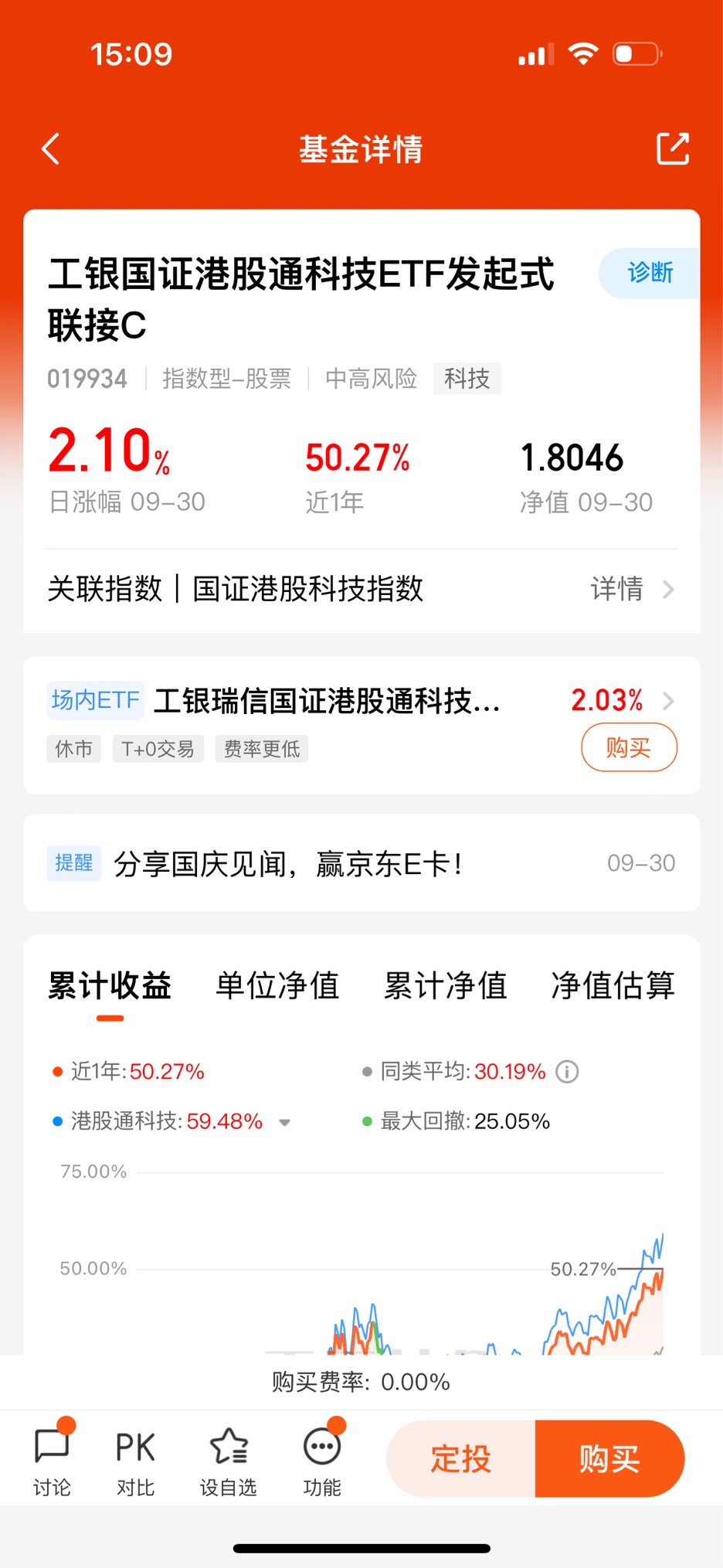 打卡第8天,看好$工银国证港股通科技ETF发起式联接C$长期投资价值,基金为投资