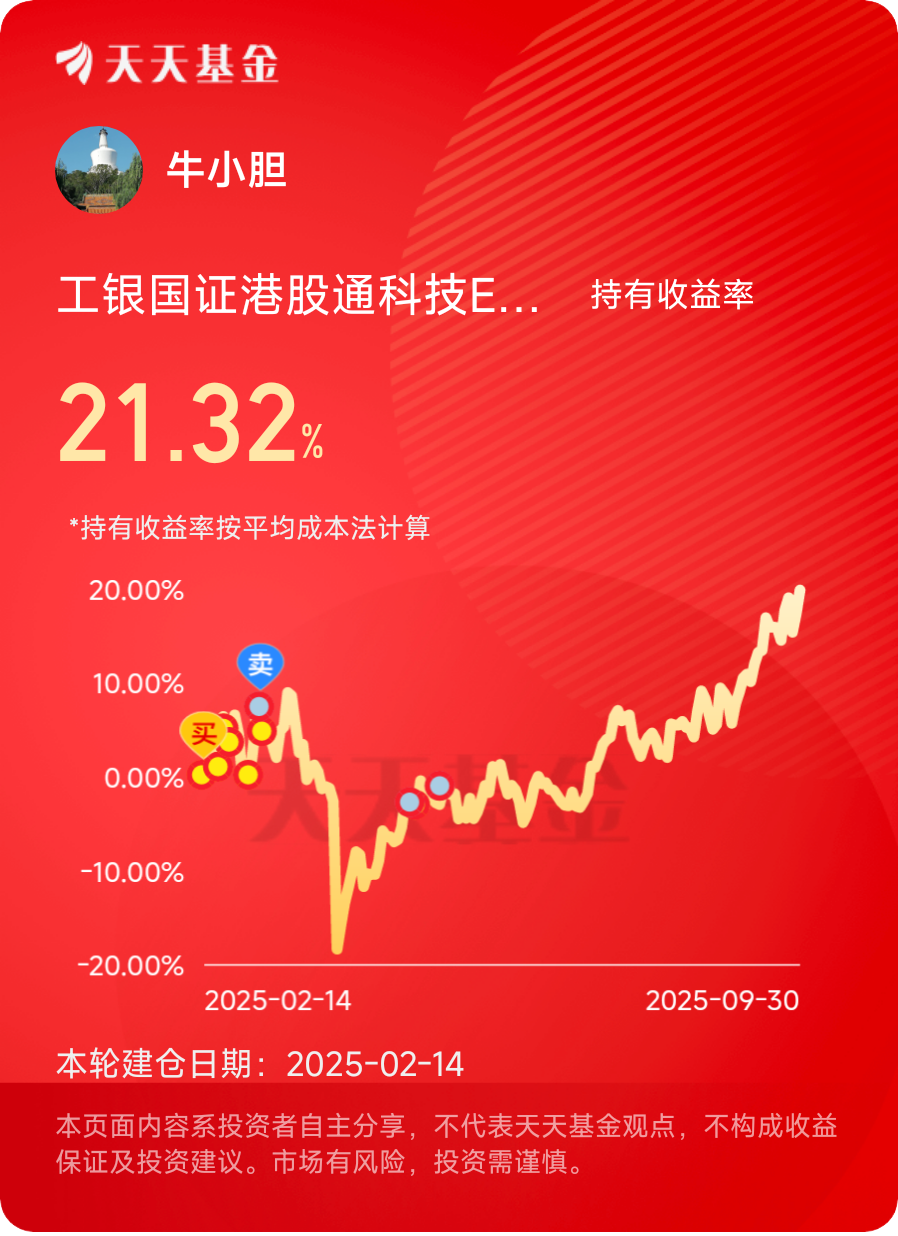 2025年最后三个月,市场或许还会有波折,但我不会动摇。因为我相信,科技自立自强是不可逆转的趋势,港股科技板块的价值正在被越来越多资金认可。我的坚定持有,不是赌短期涨跌,而是赚企业成长的钱、赚产业升级的钱、赚时间的钱。我坚信,这份穿越波动的坚守,终将在未来收获属于它的价值馈赠。@工银瑞信基金