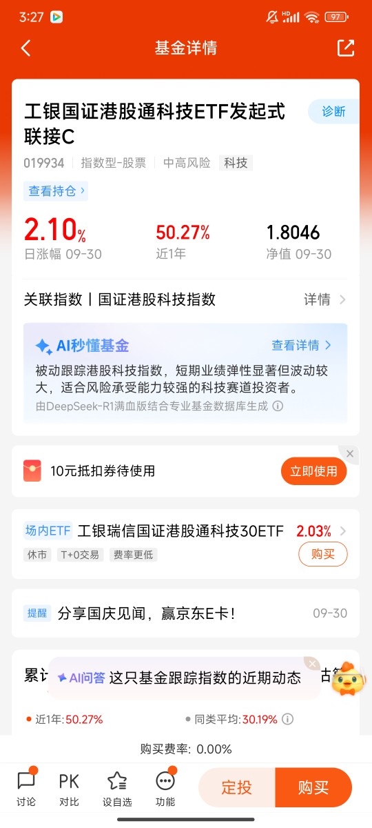 #分享国庆见闻,晒收益,瓜分好礼!# $工银国证港股通科技ETF发起式联接C$ #晒收益#