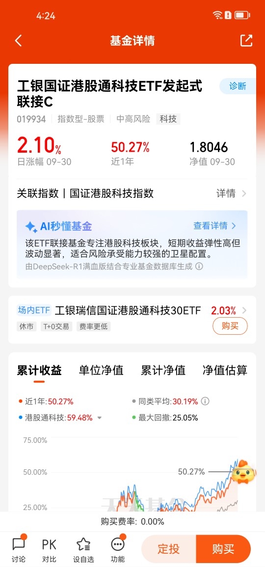 展望未来,AI浪潮下的港股科技领域蕴含着无限的机遇和可能。随着科技的不断创新和突破,港股科技板块有望在全球科技竞争中脱颖而出,成为引领世界科技发展的重要力量。而$工银国证港股通科技ETF发起式联接C$ 作为一款优秀的金融产品,将为投资者提供一个便捷、高效的参与港股科技投资的机会。对于那些关注科技发展、看好港股市场的投资者来说,不妨将目光投向$工银国证港股通科技ETF发起式联接C$ 。在把握AI浪潮下的港股科技机会的道路上,它将成为您可靠的伙伴,与您一同前行,共同分享科技发展的红利。