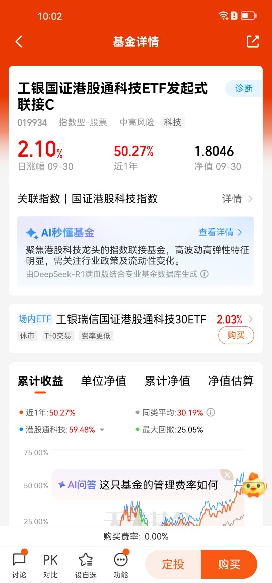 #分享国庆见闻,晒收益,瓜分好礼!# $工银国证港股通科技ETF发起式联接C$ 作为聚焦港股通科技领域的重要投资工具,凭借其鲜明的特点和潜在的投资价值,在金融市场中占据了一席之地。工银国证港股通科技基金的优点如下: