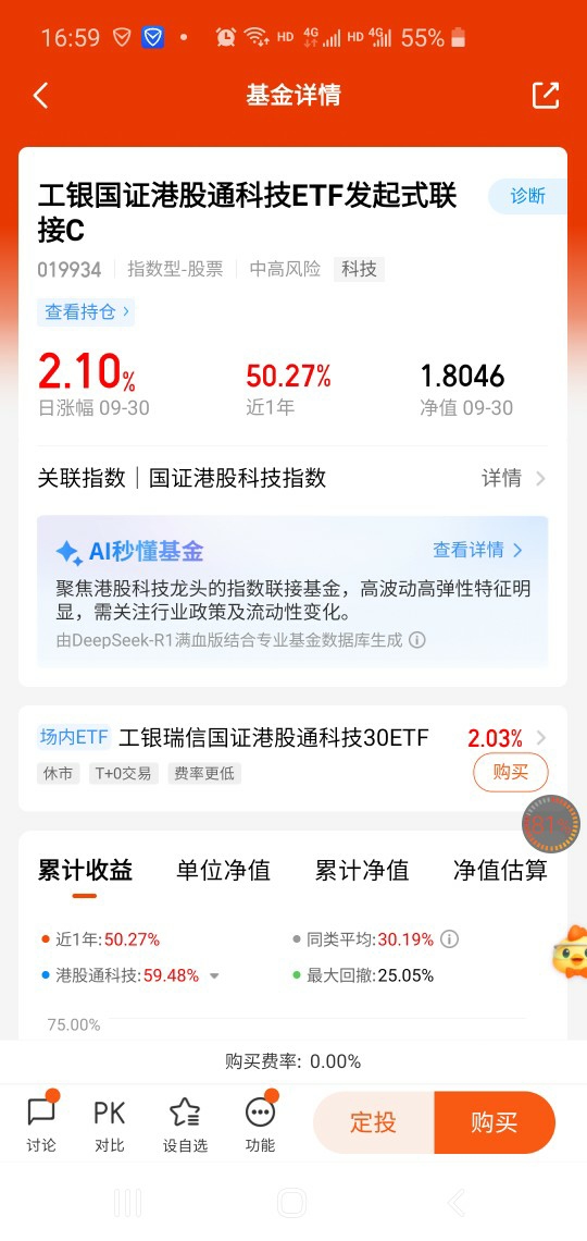 我是 $工银国证港股通科技ETF发起式联接C(019934)$的持有人,现持有收益率有14.06%。