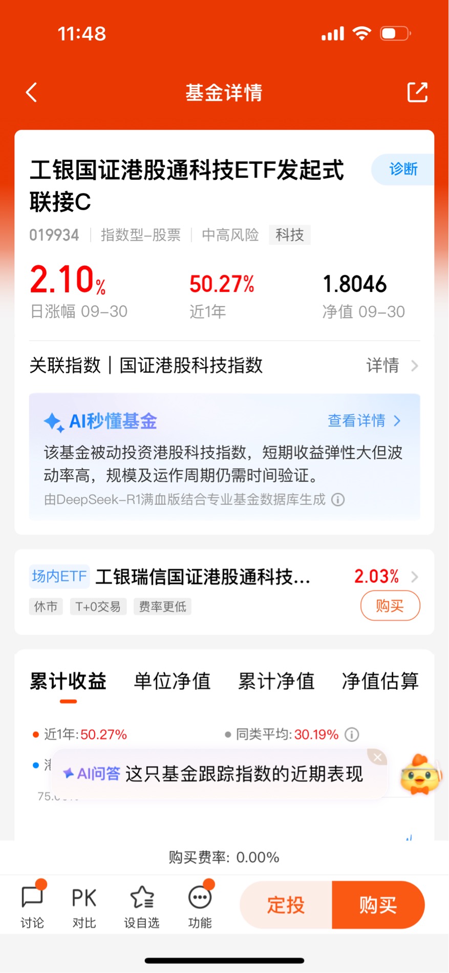 打卡第11天,看好$工银国证港股通科技ETF发起式联接C$投资价值,该基金紧密跟