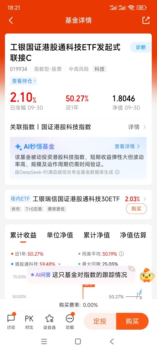 美股昨晚全线杀跌,芯片等人工智能相关股票跌幅居前,费城半导体指数跌超2%,甲骨文股价一度暴跌超7%,这可能是港股大幅回调的主因,今天是长假的最后一天,期待明天$工银国证港股通科技ETF发起式联接C$ 的表现。@工银瑞信基金
