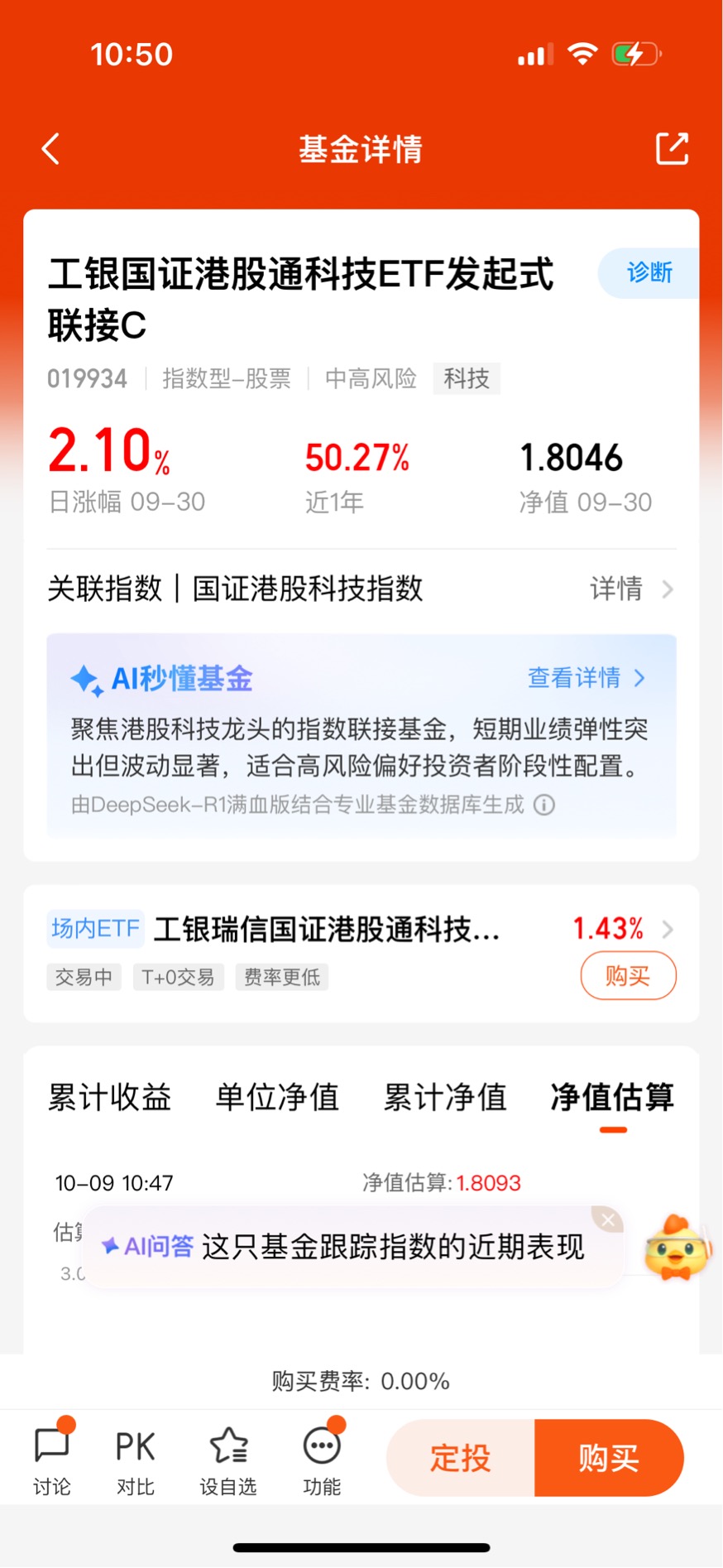 打卡第12天,$工银国证港股通科技ETF发起式联接C$ 投资价值凸显。其跟踪的国证港股通科技指数,龙头属性突出,覆盖科技多细分领域,还涵盖医药板块,可捕捉科技驱动下的医药机遇。当前,港股科技板块政策环境友好,创新活力持续释放,行业景气度不断提升。该基金为投资者提供了一键布局港股科技优质资产的便捷途径,分享行业发展红利,无论是长期持有还是阶段性配置,都具备较高吸引力。@工银瑞信基金