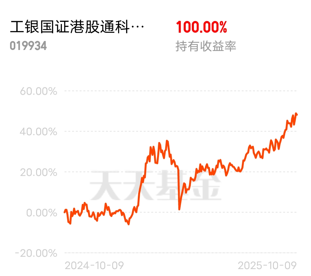 #分享国庆见闻,晒收益,瓜分好礼!# 今天周五,昨天A股三大指数集体收涨,沪指收涨1.32%,再创新高。港股震荡回调,是很好的上车机会,$工银国证港股通科技ETF发起式联接C$ 近一年上涨47.06%,大幅跑赢同类基金31.04%的平均涨幅,在3418只同类基金中排名居前,表现很棒!
