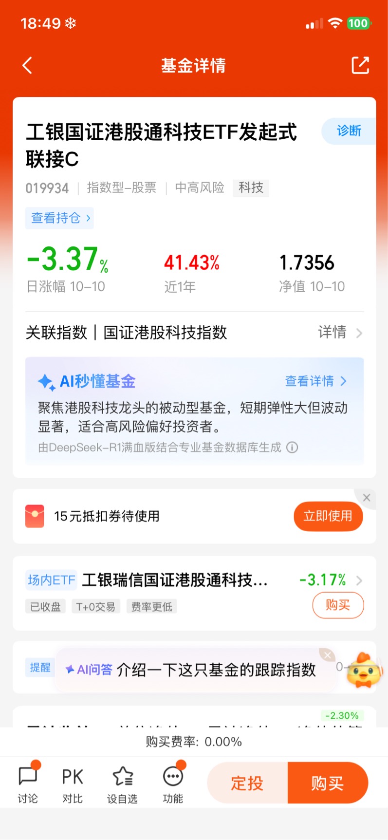 留言第十八天,$工银国证港股通科技ETF发起式联接C$关联国证港股通科技指数,聚