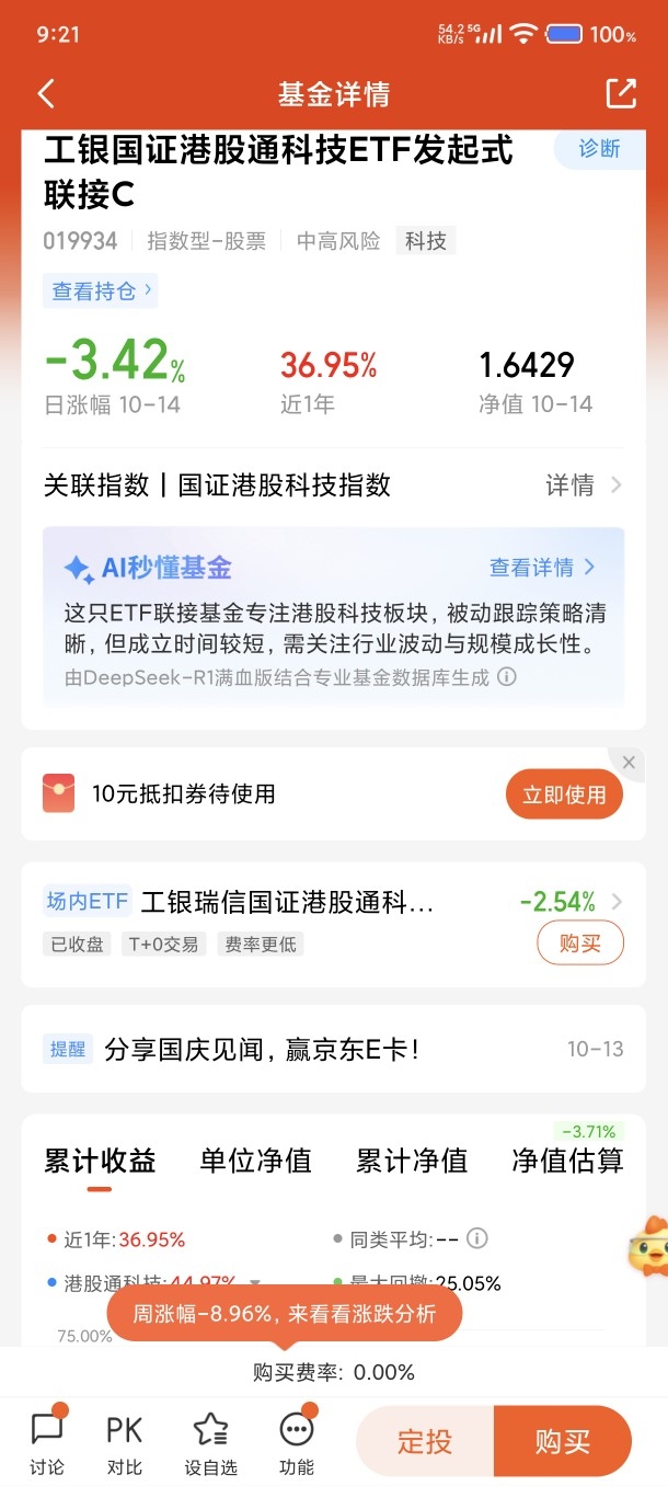 #晒实盘# $工银国证港股通科技ETF发起式联接C$ #晒收益#