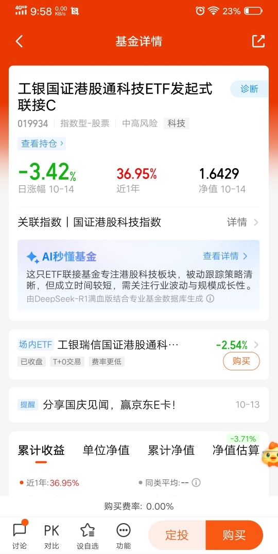 $工银国证港股通科技ETF发起式联接C$ #晒收益#