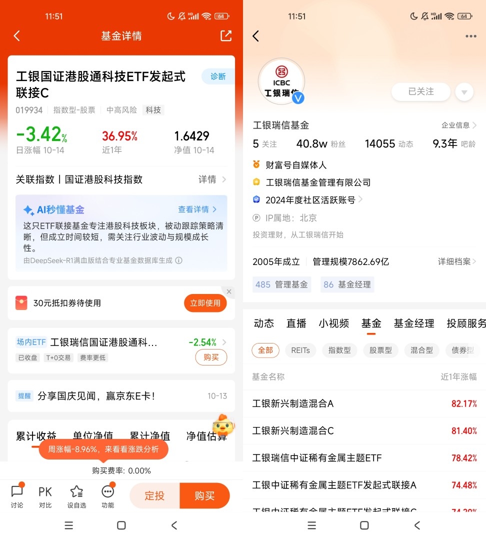 #分享国庆见闻,晒收益,瓜分好礼!# 国证港股通科技指数与恒生科技指数相比,其龙头股权重更高弹性更强,在政策驱动或盈利改善期,龙头股往往率先反弹,更高的权重能更快反应这一趋势。同时龙头企业在研发能力和市场占有率及政策支持上具备优势,在市场波动中兼具弹性与稳定性。历史数据显示,其回撤控制优于恒生科技指数。在行业覆盖广度方面:国证港股科技覆盖消费电子、互联网、医药生物等多元领域,行业多元化布局降低了单一赛道波动的影响。国证港股科技的夏普比率高于恒生科技指数,表明其风险调整后收益更具竞争力。因为是其行业分散性降低波动,同时龙头股的高成长性推升超额收益。当前港股科技板块估值仍处于低位,叠加美联储降息进程仍在,两者均具备配置价值,但国证港股科技在行业与权重结构上更适应当前成长风格的市场。个人更看好$工银国证港股通科技ETF发起式联接C$ ,估值合理,潜力空间大,性价比高,受到资金的持续关注。个人建议制定好投资计划,坚持定投,多收集筹码,耐心等待下一波行情。@工银瑞信基金
