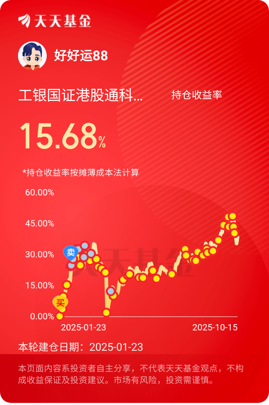 $工银国证港股通科技ETF发起式联接C(019934)$通过投资于目标ETF——国证港股通科技指数,实现对港股通科技指数的紧密跟踪,全面拥抱新经济的发展红利。2025年最后3个月,我坚定看好其投资机会,开启周定投模式,目前是我的第一重仓基金,期待第四季度的精彩表现!@工银瑞信基金