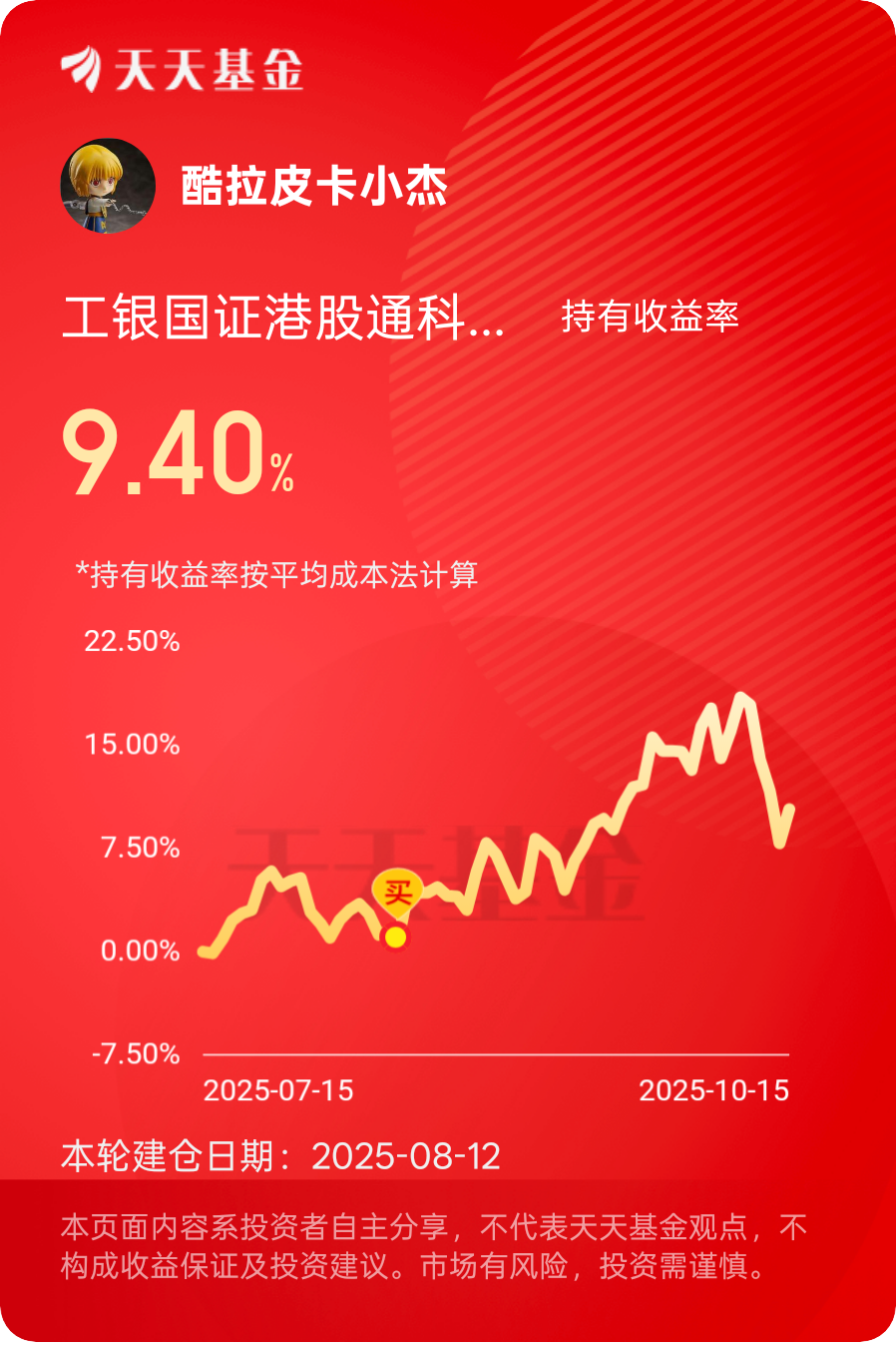$工银国证港股通科技ETF发起式联接C$ #晒收益#