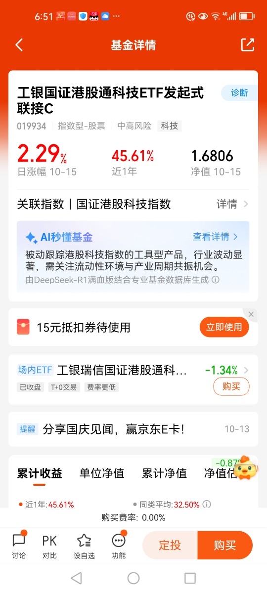 #分享国庆见闻,晒收益,瓜分好礼!#打卡第二十二天。截止目前,国证港股通科技指数近1周下跌7.24%,港股市场因外资持股占比高、交易机制与国际市场接轨,其指数表现相较于A股,对美股走势及外资对中国资产的配置态度更为敏感。从配置视角看,当前港股的阶段性波动反而为投资者提供了布局窗口。其中,国证港股通科技指数板块(涵盖互联网、半导体芯片、创新药等细分领域)。在人工智能产业叙事持续强化的背景下,中长期成长逻辑清晰,后续反弹机会具备较强确定性。当下的震荡回调,也是投资者布局的好机会。投资者可重点关注紧密跟踪国证港股通科技指数的$工银瑞信国证港股通科技ETF发起式联接C(019934)$基金,充分分享科技资产成长红利。@工银瑞信基金
