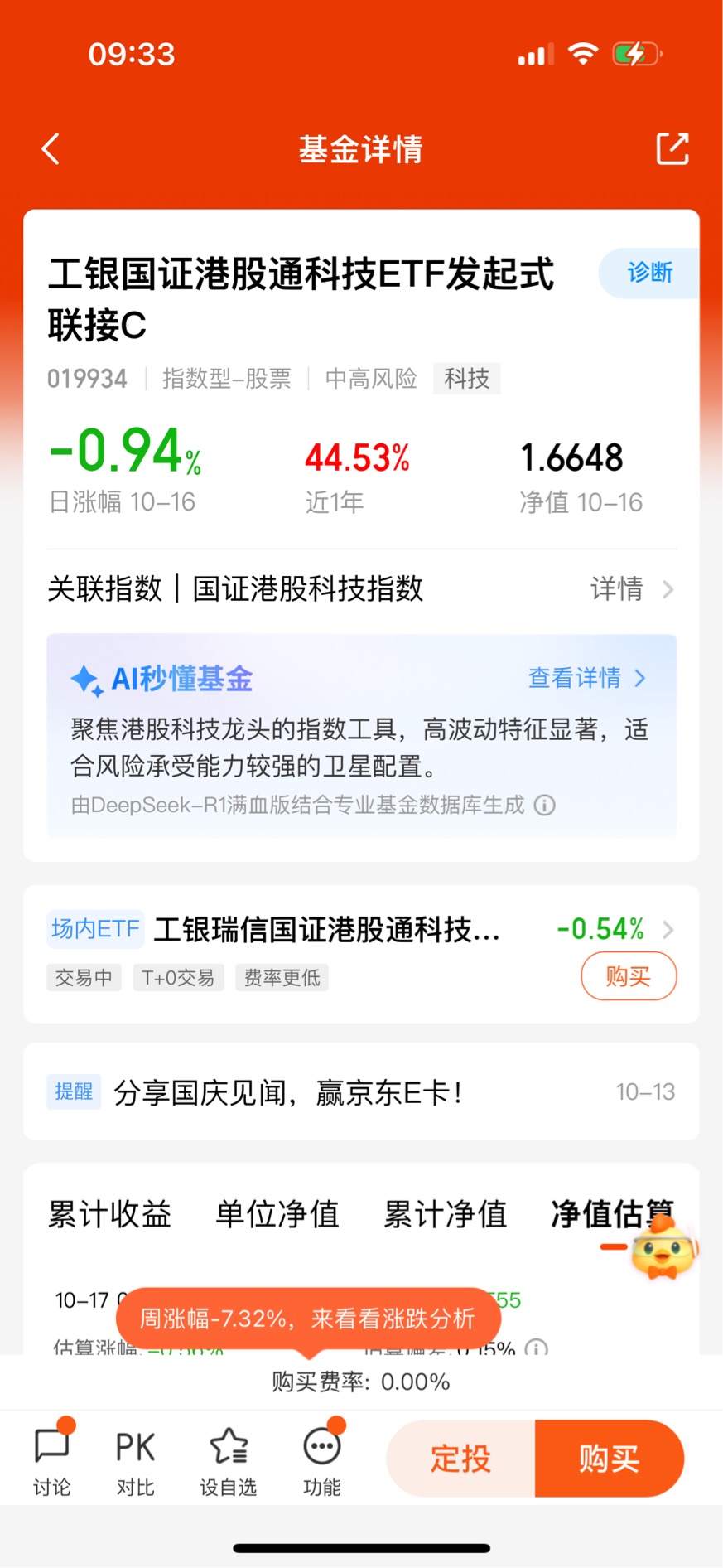打卡第20天,$工银国证港股通科技ETF发起式联接C$作为工银瑞信旗下港股通科技