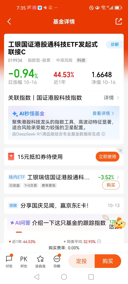$工银瑞信国证港股通科技ETF发起式联接C(019934)$作为被动型指数基金,其将不低于90%的资产投向目标ETF,间接跟踪国证港股通科技指数,业绩比较基准设定为该指数收益率(经汇聚调整)的95%+银行人民币活期存款利率(税后)的5%,有效规避了主动管理基金的风格漂移风险,确保投资者能完整捕捉板块整体行情。对于普通投资者来讲,$工银瑞信国证港股通科技ETF发起式联接C(019934)$的成立,普通投资者无需开通港股账户,通过场外基金账户即可参与港股科技龙头投资,10元起投的低门槛,使得普通投资者便利投资港股科技核心资产。@工银瑞信基金