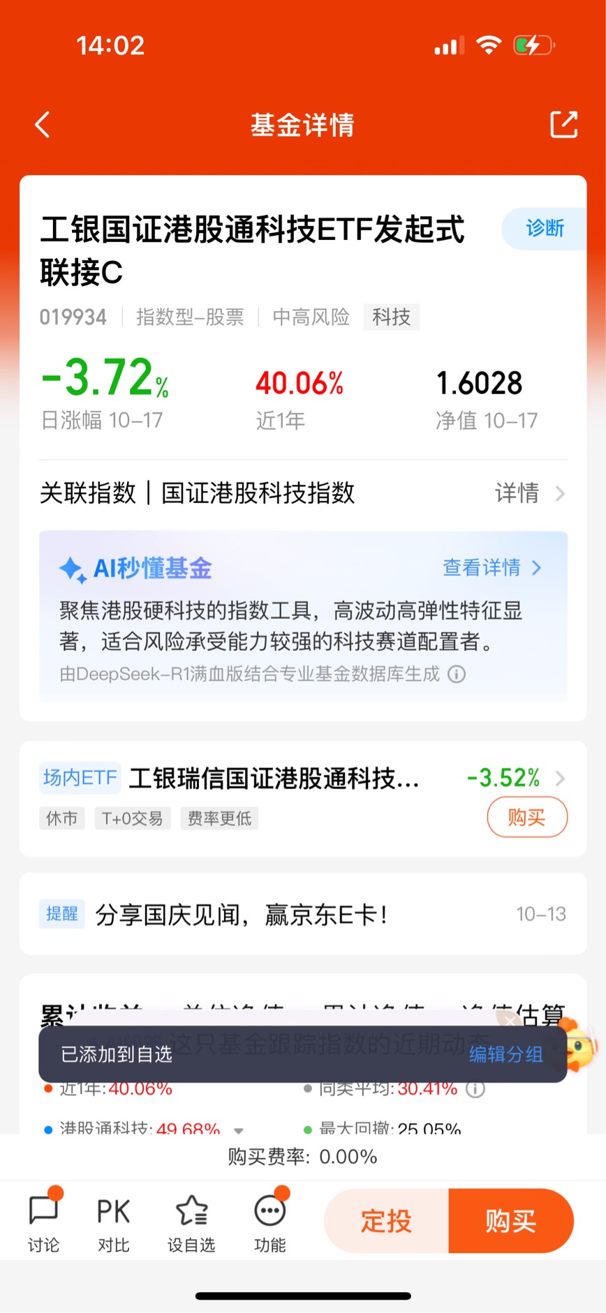 当前港股科技板块估值处于历史相对低位,具备一定的安全边际。随着未来宏观经济环境逐步改善和企业盈利能力的修复,板块有望迎来估值与业绩的双重提升。$工银国证港股通科技ETF发起式联接C$ 作为联接基金,起购门槛较低,交易便捷,适合看好港股科技领域长期前景、希望进行资产配置但又缺乏个股研究能力的普通投资者。@工银瑞信基金