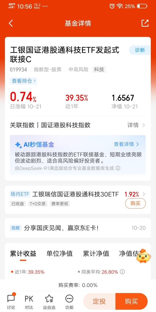$工银国证港股通科技ETF发起式联接C$ #晒收益#
