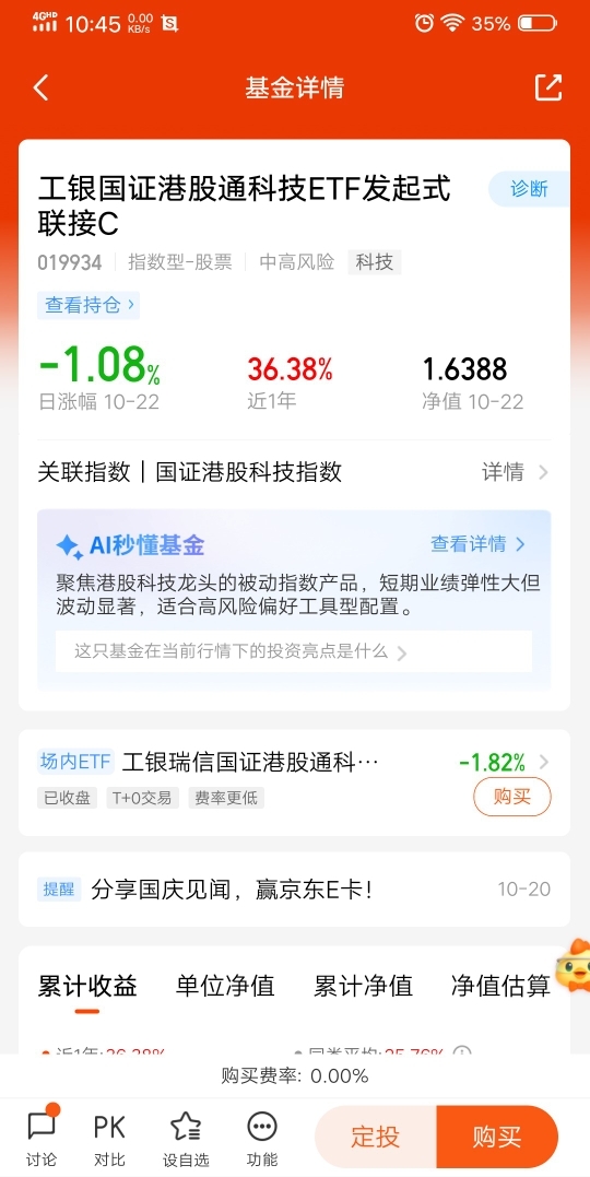 $工银国证港股通科技ETF发起式联接C$ #晒收益#