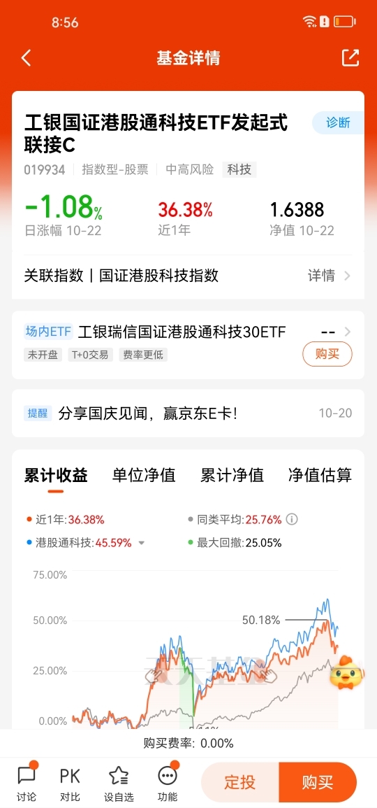 综上所述,工银国证港股通科技ETF发起式联接基金凭借其指数化投资、费率优势及港股科技板块的长期成长性,为投资者提供了高效布局中国科技创新的工具。尽管短期市场波动不可避免,但在人工智能、产业升级及政策红利的推动下,港股科技龙头企业的盈利增长潜力与估值修复空间仍值得期待。对于像我这样风险承受能力较高、追求长期收益的投资者,算是一蛮不错的选择。@工银瑞信基金