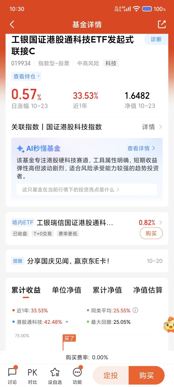 $工银国证港股通科技ETF发起式联接C$ #晒实盘# #晒收益#