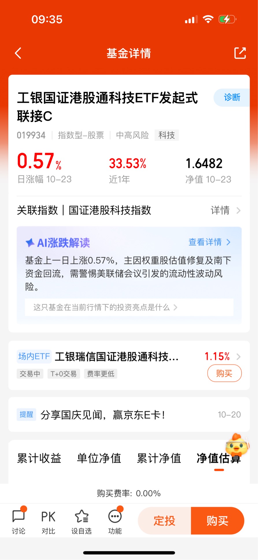 打卡第27天,$工银国证港股通科技ETF发起式联接C$聚焦港股科技龙头,为投资者