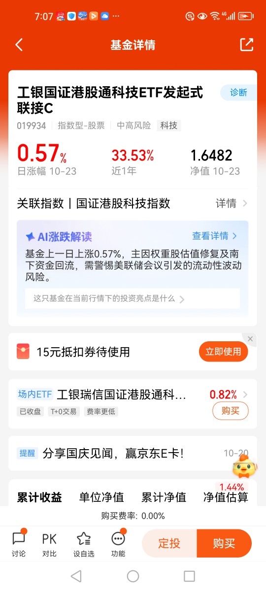 在AI浪潮下,科技行业发展空间广阔,国证港股通科技指数(987008)将受益于AI技术的广泛发展应用,具有较大的成长潜力,为指数的长期增长提供了强有力支撑。$工银国证港股通科技ETF发起式联接C(019934)$是以国证港股通科技指数为标的的基金,无申购费,方便投资者一键配置中国科技资产。@工银瑞信基金