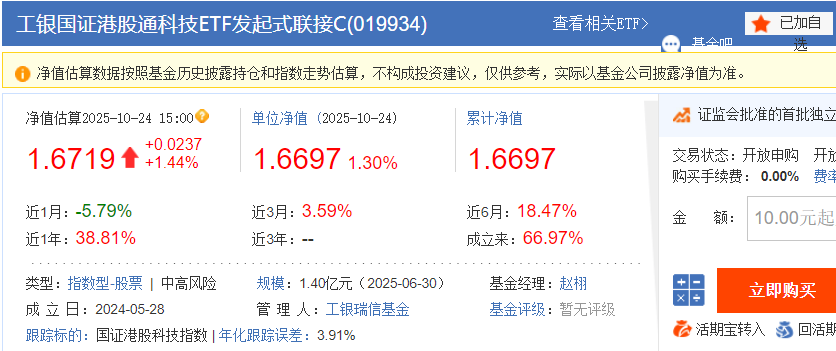 工银国证港股通科技ETF发起式联接C(019934)的独家优势
