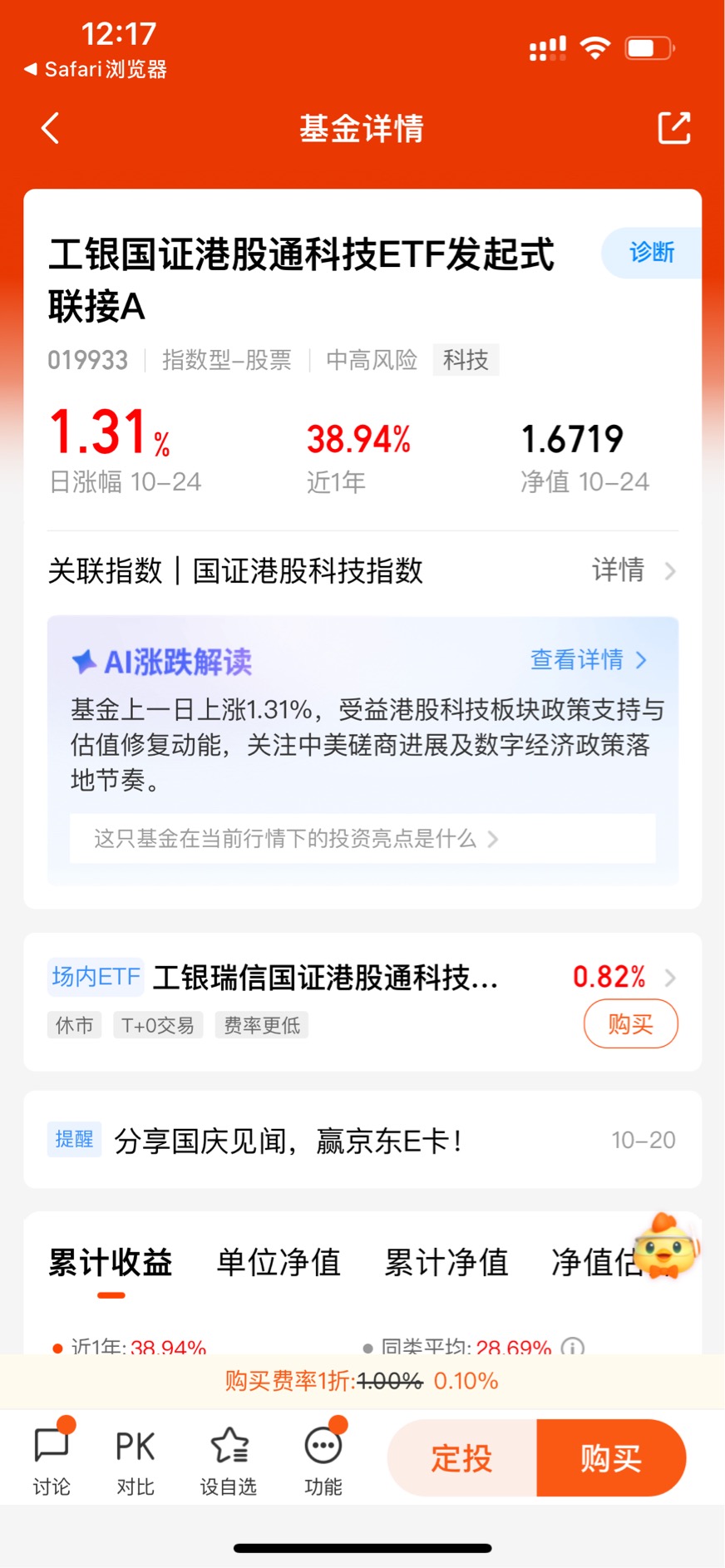 我自己是已经开启了工银瑞信国证港股通科技ETF发起式联接基金(A类代码019933,C类代码019934)的定投计划,准备慢慢通过定投的方式,配置10%左右的仓位,为自己的投资组合提供一些进攻性,接下来就看“市场先生”给不给机会了,哈哈。