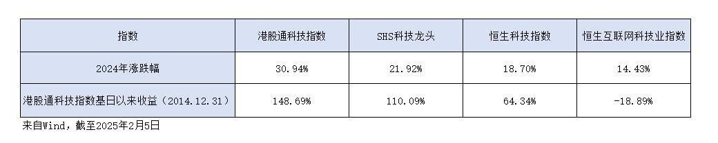 #分享国庆见闻,晒收益,瓜分好礼!# 我看好国证港股通科技指数,该指数聚焦互联网巨头、芯片半导体、软件和创新药,对比几个大家熟知的核心港股通科技指数:港股通科技指数、SHS科技龙头、恒生科技和恒生互联网科技业指数,2024年涨跌幅分别为:30.94%、21.92%、18.70%、14.43%,一看可以看到港股通科技指数比我们熟悉的恒生科技要表现优秀: