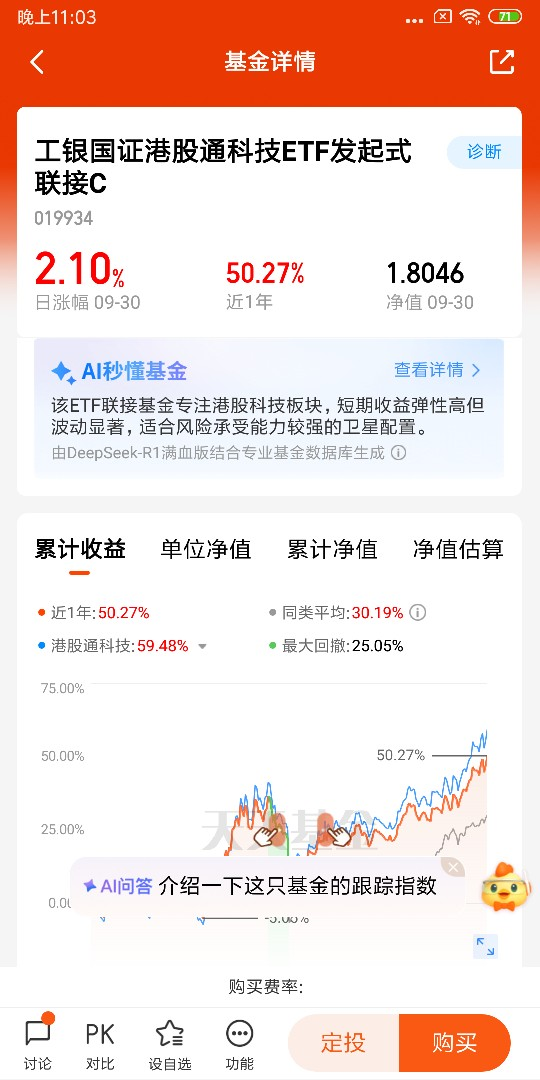 #分享国庆见闻,晒收益,瓜分好礼#打卡第15天,看好港股今年的投资机会尤其看好港股科技板块的投资机遇$工银国证港股通科技ETF发起式联接C$ 。