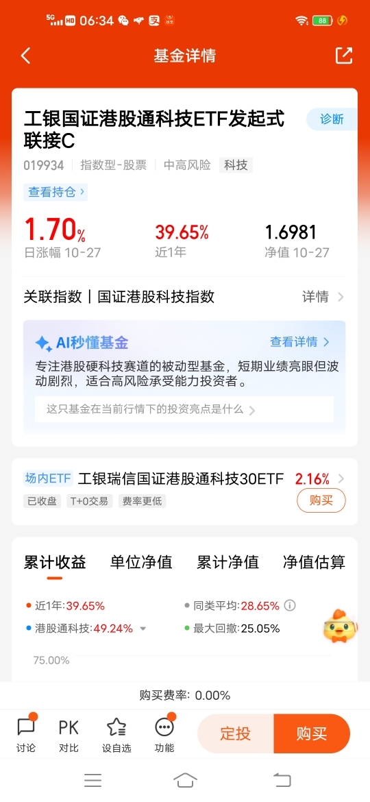 #分享国庆见闻,晒收益,瓜分好礼!# 今天周二,受周末利好消息影响,A股、港股市场昨天高开高走,各大指数均涨超1%,$工银国证港股通科技ETF发起式联接C$ 涨1.7%,近一年涨39.65%,大幅跑赢同类基金28.65%的平均涨幅,在3080只同类基金中排名居前,表现非常棒!伙伴们可以关注一下。