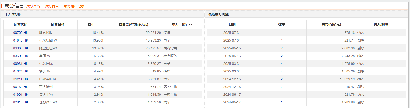 其次,国证指数的行业配置更贴合内地资金对政策支持型赛道的认知。近年来,内地资金对符合”国产替代”“科技自主”战略的标的持续增持,而国证港股通科技指数通过分散配置电子元件、半导体、生物医药等政策支持型赛道,更贴合这一配置逻辑。例如,2025年二季度南向资金重点配置比亚迪股份、中芯国际等国证指数成分股,而恒生科技指数中互联网权重过高,可能受政策扰动影响更大。