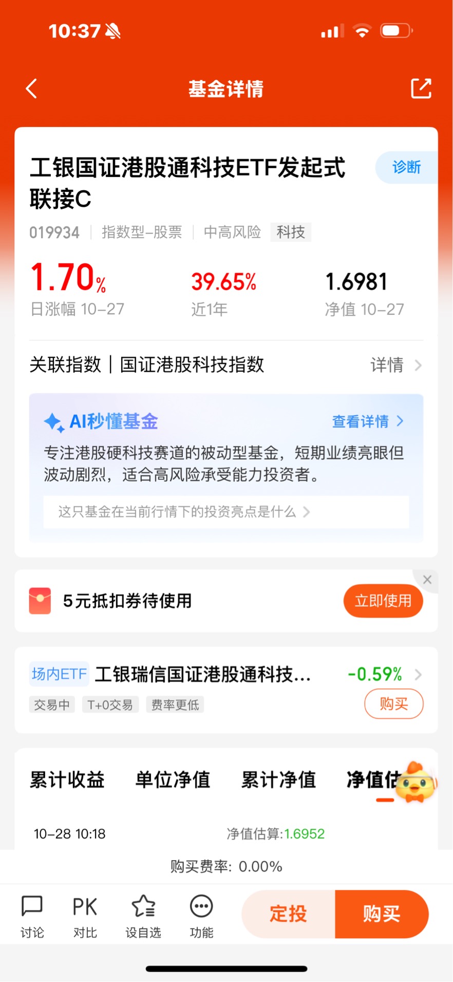 #分享国庆见闻,晒收益,瓜分好礼#打卡第十六天。今年以来港股科技行业领涨,看好工银国证港股通科技ETF发起式联接C投资价值。