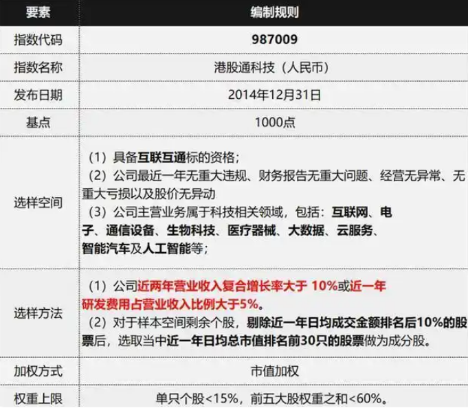 国证港股通科技指数采用更为严格的财务筛选标准,要求成分股近两年营业收入复合增速大于10%,或近一年研发费用占营业收入比例超过5%。同时,成分股需为港股通范围内市值前30%的科技企业,平均市值达2390亿元,确保了龙头企业的代表性。