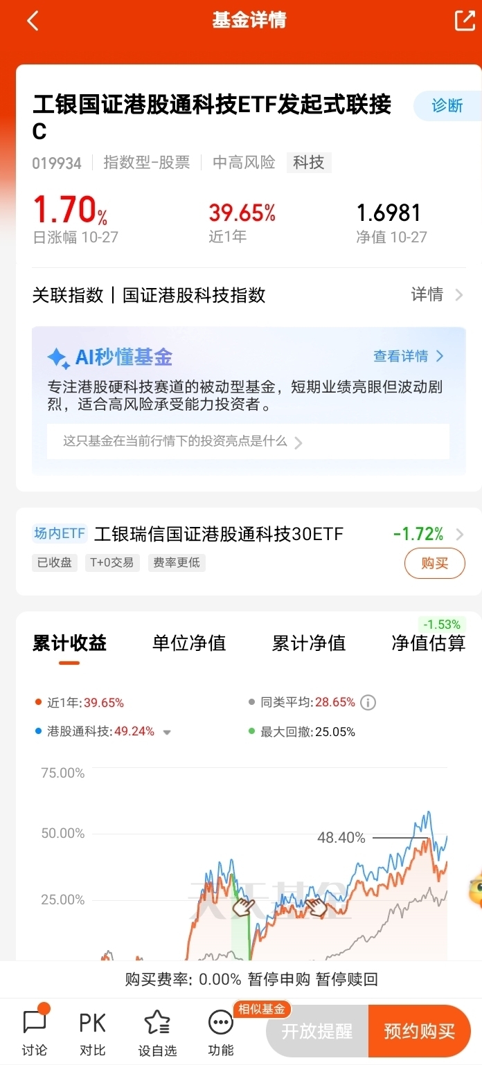 工银国证港股通科技ETF发起式联接C基金是我布局港股科技板块的优质选择
