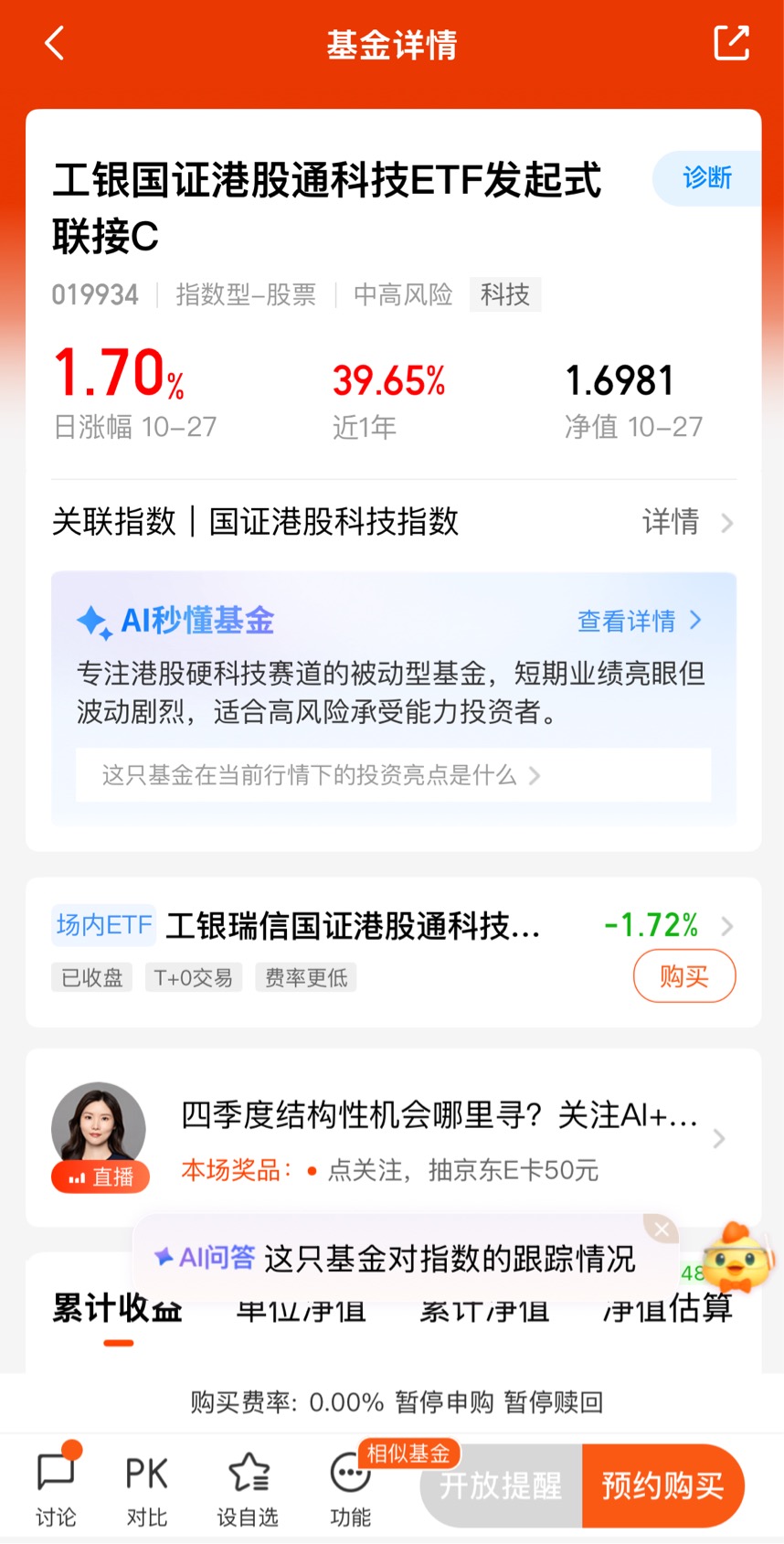 流动性保障:底层ETF(港股通科技30ETF)规模超200亿元,单日成交常超2亿元,支持T+0交易。