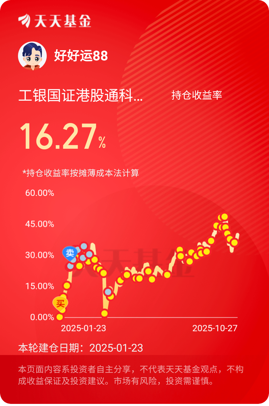 $工银国证港股通科技ETF发起式联接C(019934)$通过投资于目标ETF——国证港股通科技指数,实现对港股通科技指数的紧密跟踪,全面拥抱新经济的发展红利。2025年最后3个月,我坚定看好其投资机会,开启周定投模式,目前是我的第一重仓基金,期待第四季度的精彩表现!@工银瑞信基金