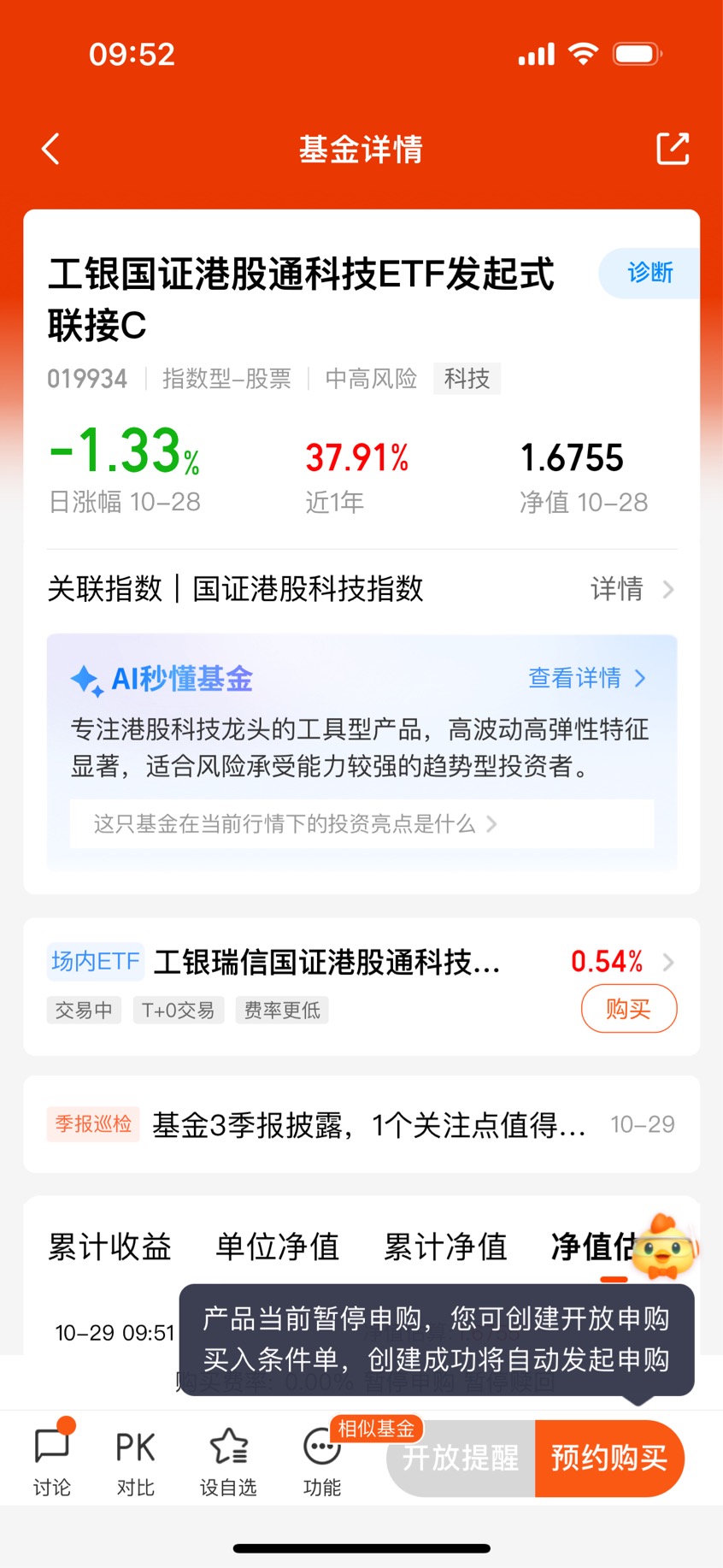 因此,对于看好中国科技行业长期发展、希望捕捉港股估值修复机遇,同时又希望规避单一标的波动风险的投资者而言,工银国证港股通科技ETF联接C是一个极具战略意义的配置选择。它不仅仅是一个被动工具,更是一张驶向中国新经济未来的船票。@工银瑞信基金