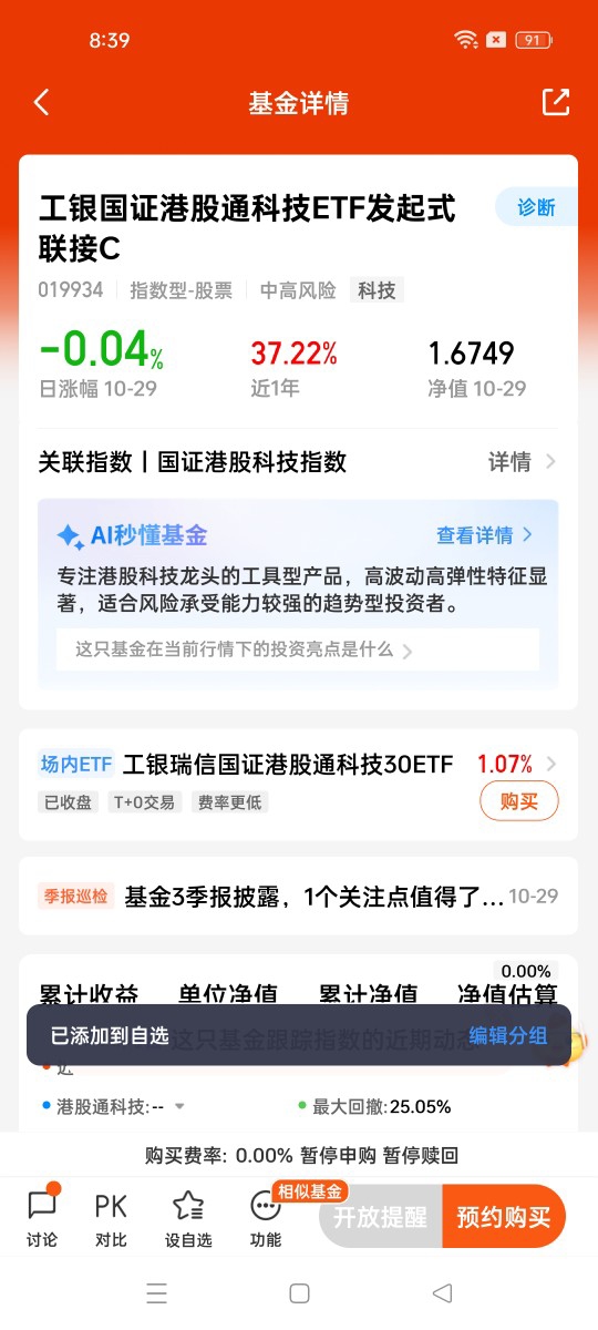 工银国证港股通科技ETF联接C在降息预期下的投资价值,是指数设计科学性、资金共振效应与产业升级趋势共同作用的结果。其高弹性的龙头权重、多元化的行业布局、政策支持的生物科技板块,使其在当前全球科技竞争与流动性宽松的双重驱动下,成为捕捉港股科技「戴维斯双击」行情的核心工具。对于追求长期资本增值的投资者而言,该基金不仅是分享科技革命红利的有效载体,更是在复杂市场环境中实现资产配置优化的战略选择。在美联储降息落地与南向资金持续流入的共振下,港股科技板块的黄金投资窗口已然开启。@工银瑞信基金