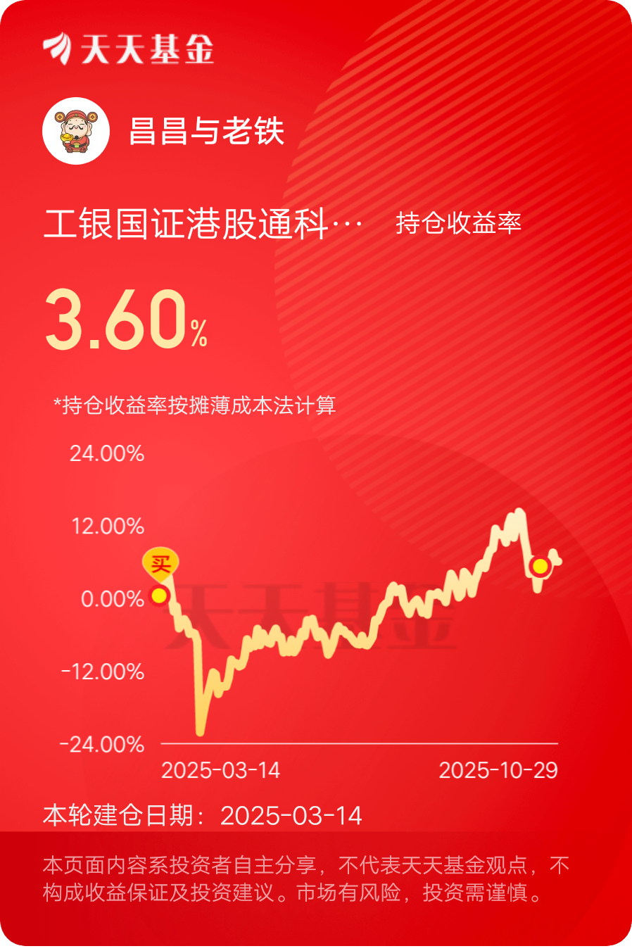 更让我惊喜的是行业覆盖,除了信息技术、通讯服务这些科技板块常见的领域,还加入了12.29%的医疗保健行业。要知道今年AI医疗、创新药领域动作频频,国证港股通科技能把医药机会也纳入其中,相当于多了一层收益保障,分散风险的能力比单纯的科技指数强多了。现在美联储降息周期深化,全球流动性宽松,外资肯定更青睐中国新经济领域,港股科技作为代表,后续潜力应该不小。$工银国证港股通科技ETF发起式联接C$