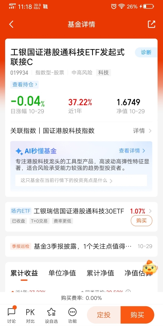 $工银国证港股通科技ETF发起式联接C$ #晒收益#