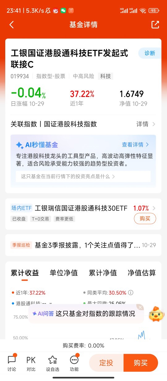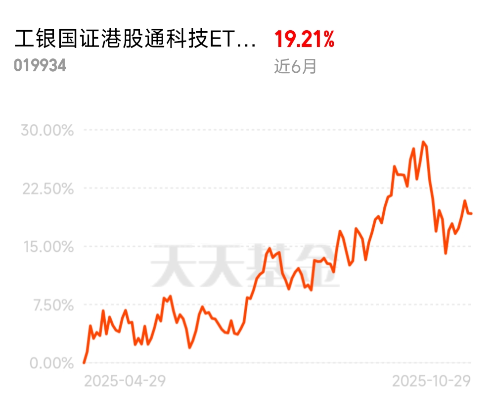 #分享国庆见闻,晒收益,瓜分好礼!# 打卡第三十三天。$工银国证港股通科技ETF发起式联接C (019934)$主要跟踪国证港股通科技指数,该指数覆盖了30只通过港股通交易的科技龙头股,前十大权重股占比近70%(包括腾讯、小米、美团、中芯国际、百济神州等),聚焦于互联网、半导体、生物科技等高成长领域。