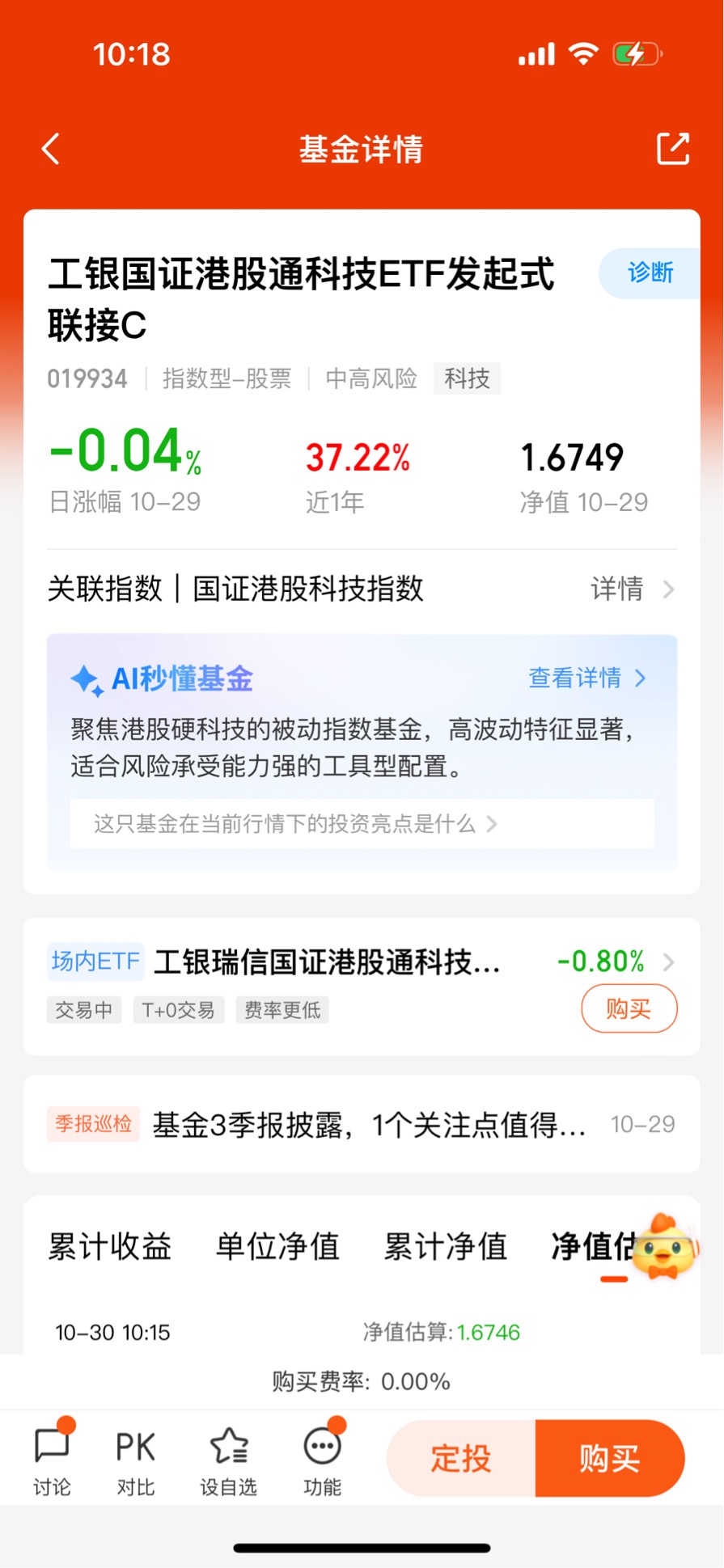 投资$工银国证港股通科技ETF发起式联接C$ 优势在于以一揽子方式便捷布局港股科技核心资产,分散个股风险。其作为ETF联接基金,门槛低、流动性好,是普通投资者低位配置港股科技赛道、把握潜在修复机遇的高效工具。在当前时点,其价值主要体现在“高性价比”上,为长期布局提供了较好窗口。@工银瑞信基金