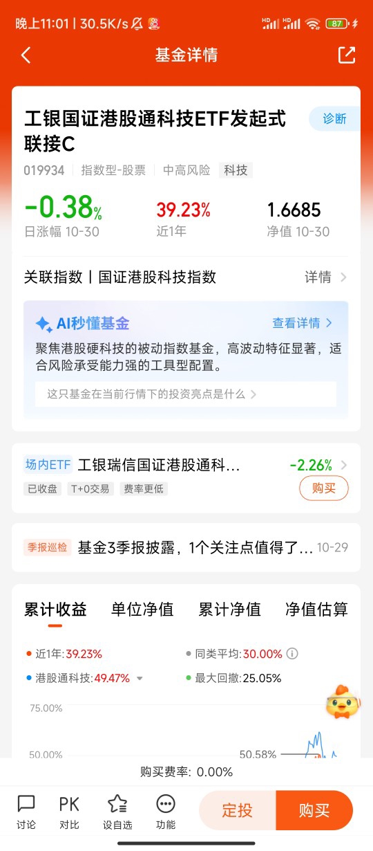 #分享国庆见闻,晒收益,瓜分好礼!# 美联储的货币政策走向一直是全球金融市场的风向标,而当下,美联储10月底超强降息预期正为全球投资格局带来深刻影响。在此背景下,港股科技板块异军突起,其中,$工银国证港股通科技ETF发起式联接C$ 凭借其独特的优势,成为众多投资者关注的焦点,且其近10年跑赢恒生科技指数超120%,值得关注。