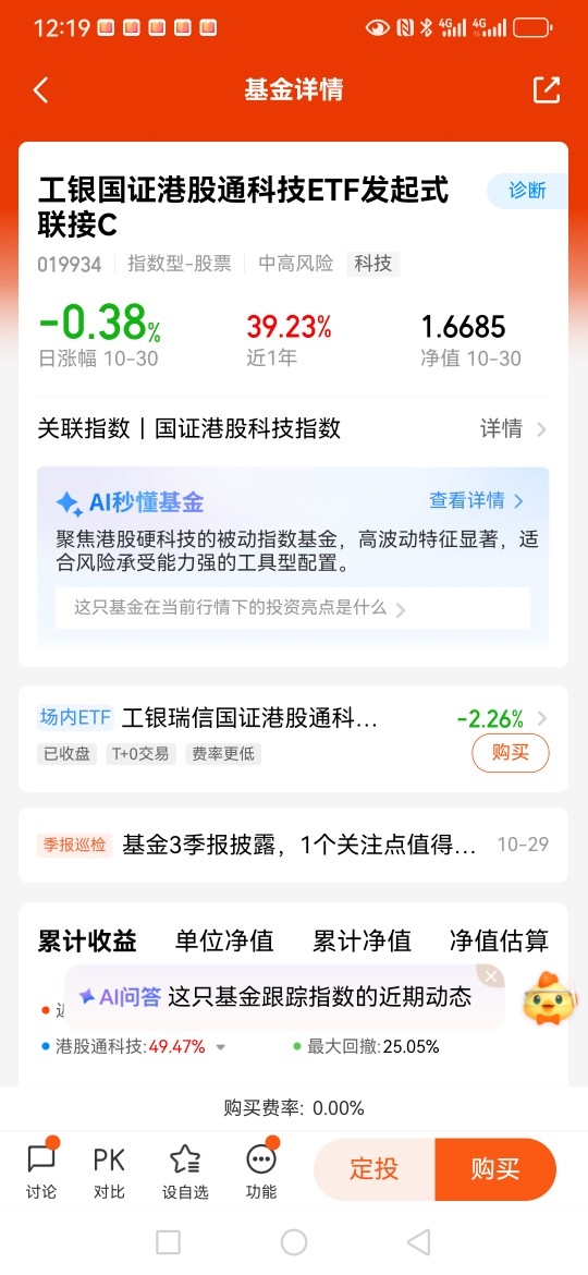 那为什么是港股通科技呢,先拿业绩说话,就拿我这个$工银国证港股通科技ETF发起式联接C$ 举例,近一年上涨40%多,再来看看工银这只场内ETF的规模,200亿多了,那还怕什么!