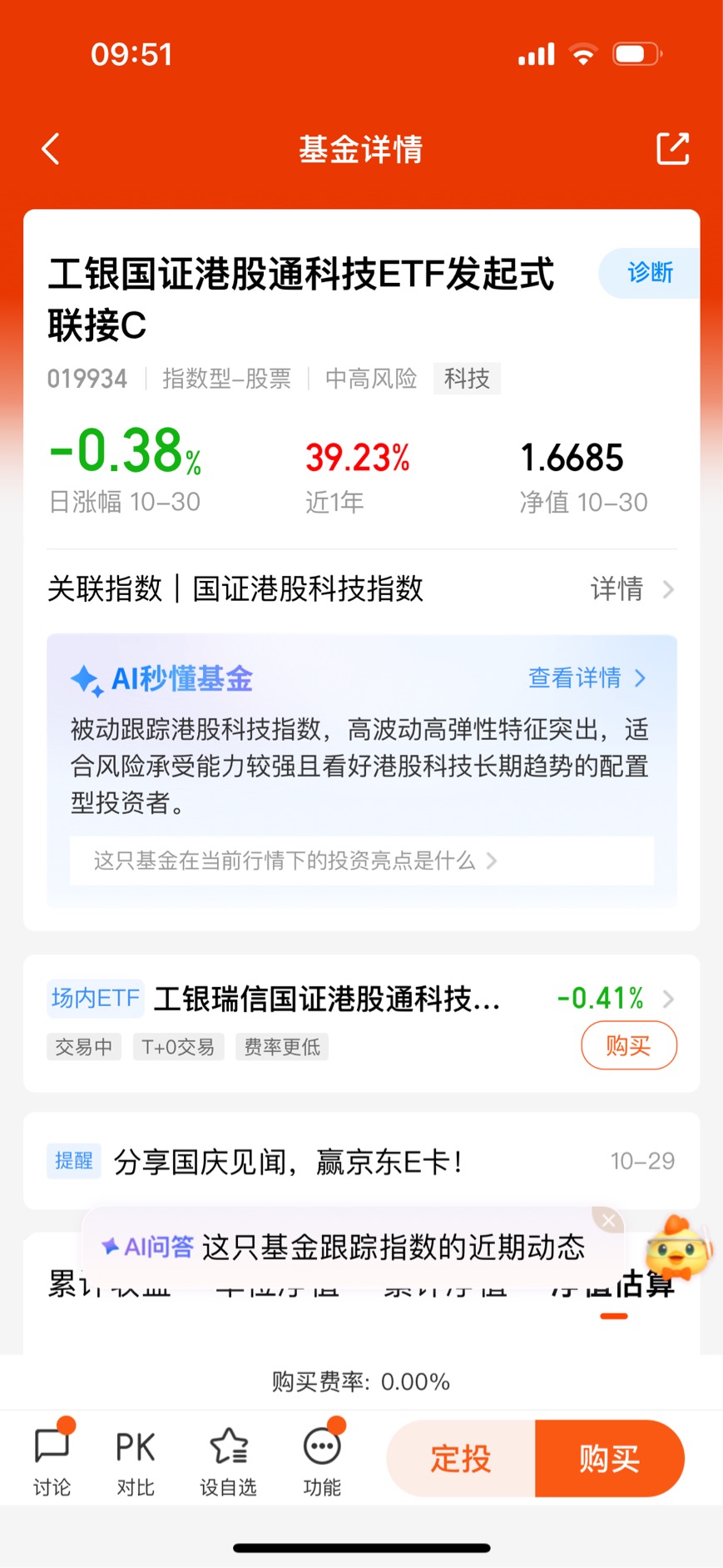 打卡第34天,$工银国证港股通科技ETF发起式联接C$为内地投资者布局港股科技龙